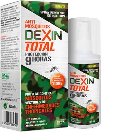 Antimosquitos Dexin Total es una loción repelente formulada con citriodiol, un repelente natural que resulta altamente eficaz y que está recomendado por la mismísima OMS. Ofrece una protección de 9 horas contra mosquitos vectores de enfermedades tropicales, incluidos el mosquito tigre y el mosquito Aedes aegypti, portador del virus del dengue y de la fiebre amarilla.